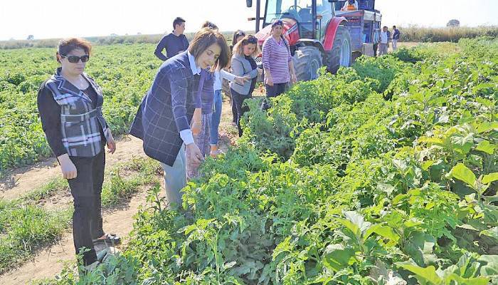Kumkale’deki tarlalarda domates dışında biber, patlıcan, karnabahar ve kırmızı lahana toplayan Vali Orhan Tavlı çiftçilerle sohbet etti.
