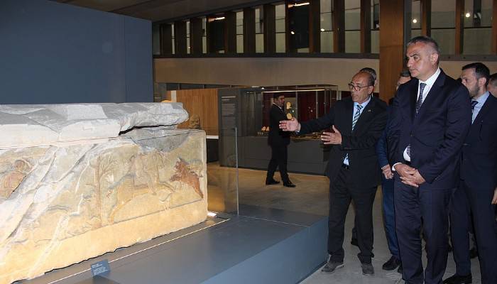 Çanakkale Kara Savaşları’nın 104’üncü anma törenlerine katılan Kültür ve Turizm Bakanı Mehmet Nuri Ersoy, tören sonrasında Tevfikiye Köyündeki Troya Müzesi’nde incelemelerde bulundu. Bakan Ersoy’ya müzede yaptığı incelemelerde Çanakkale Valisi Orhan Tavlı, Gelibolu Tarihi Alan Başkanı İsmail Kaşdemir, AK Parti Çanakkale Milletvekili Jülide İskenderoğlu, AK Parti Çanakkale İl Başkanı Gültekin Yıldız, Müze Müdürü Ali Atmaca eşlik etti. Bakan Ersoy, Müze Müdürü Ali Atmaca’dan müzede bulunan eserler hakkında detaylı bilgi aldı.