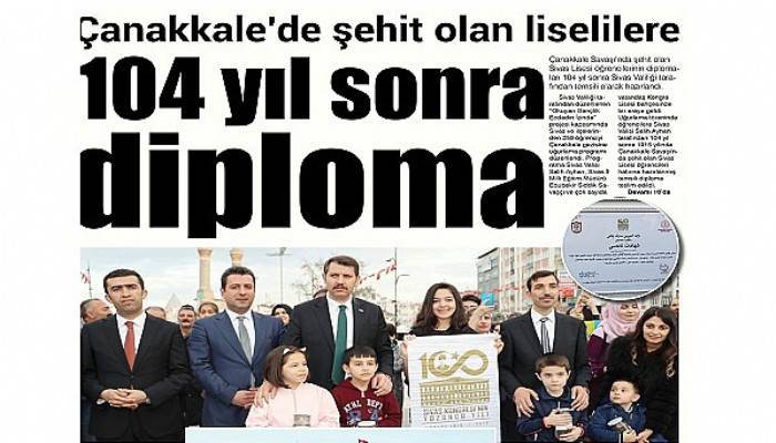 Sivas Valiliği tarafından düzenlenen “Okuyan Gençlik Ecdadın İzinde” projesi kapsamında Sivas ve ilçelerinden 250 öğrenciyi Çanakkale gezisine uğurlama programı düzenlendi. Programa Sivas Valisi Salih Ayhan, Sivas İl Milli Eğitim Müdürü Ebubekir Sıddık Savaşçı ve çok sayıda vatandaş Kongre Lisesi bahçesinde bir araya geldi. Uğurlama töreninde öğrencilere Sivas Valisi Salih Ayhan tarafından 104 yıl sonra 1915 yılında Çanakkale Savaşı'nda şehit olan Sivas Lisesi öğrencileri hatırına hazırlanmış temsili diploma teslim edildi. Diploma Çanakkale Şehitler Müzesi'ne götürülmek üzere öğrenciler tarafından teslim alındı. Sivas ve 16 ilçesinden birer kavanoz toprak, Çanakkale Şehitliği'ndeki topraklar ile birleştirilmek üzere öğrenciler tarafından Çanakkale’ye götürülmek üzere yola çıktı.