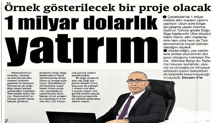 AlamosGold’un Amerika, Kanada ve Meksika’da altın madeni üretimini yapması ile tanınıyor. Türkiye’de de Doğu Biga adıyla faaliyet gösterdiğini hatırlatan Ülke Müdür Metin Demir, “AlamosGold’un Türkiye iştiraki olarak faaliyet gösteren şirketimiz Doğu Biga Madencilik’in hepsi Çanakkale’de olmak üzere üç projesi bulunuyor. Çanakkale’ye 26 kilometre mesafedeki Kirazlı projemiz, planladığımız yatırımlardan birisi. Maden ömrü süresince toplamda 514 bin ons altın, 3.5 milyon ons gümüş üretimi planlanmakta. Bir diğer projemiz olan Ağı Dağı projesinin maden ömrü boyunca da yaklaşık 1 milyon ons altın, 2 buçuk milyon ons gümüş üretimi olacak. Çamyurt projesinde ise fizibilite çalışmaları devam ediyor. Mevcut projelerimizle birlikte bölgeye yaklaşık 500 milyon ABD Doları kuruluş yatırımı ve İşletme dönemi harcama tutarımızla birlikte yaklaşık olarak 1 milyar ABD Doları yatırım yapmayı planlıyoruz. Bölge ekonomisine sağlayacağı reel toplam katkının ise gelişecek yan sanayilerle birlikte 6 katına çıkacağını öngörüyoruz. Yine bu projelerde, 1000 kişi doğrudan istihdam edilecek. Hizmet alımlarıyla birlikte bu rakamın 2 bin kişiyi aşması bekleniyor. Bunun da bölgeye önemli bir ekonomik canlılık getireceği tartışılmaz bir gerçek. Maden ekonomisi, ürettiği katma değerle diğer tüm sektörlerin hem itici gücü hem de ana girdisi olarak yerini alıyor. Tüm yatırım ve işletme dönemi harcamalarıyla bölge ekonomisine doğrudan istihdam dışında, inşaat sektörü, taşımacılık, giyim, tarım ve gıda gibi bir çok sektörleri de etkileyecek güçlü bir katkı koymaya hazırlanıyoruz. Bunların dışında, dahil olduğumuz veya doğrudan gerçekleştirdiğimiz bir çok Sosyal Sorumluluk Projemizle, birlikte yaşadığımız yöreye ciddi anlamda katkılar sunmaya çalışıyoruz. Paydaşlarımızla her ay düzenli olarak toplantılar yapıyor, açık, şeffaf bir biçimde ve oybirliği ile aldığımız kararlarla belirlenen projeleri hayata geçiriyoruz. Karşılıklı güven esasına dayanan, bölgemizin hem sosyal hem de ekonomik geleceğine katkı sağlama yönündeki ortak paydayla hareket eden bir temel üzerine inşa ettiğimiz bu yapı ile gelecekte çok daha güçlü, çok daha üretken olacağımızdan ve Türkiye’nin gurur duyacağı bir örnek teşkil edeceğimizden hiç şüphem yok” diye konuştu.