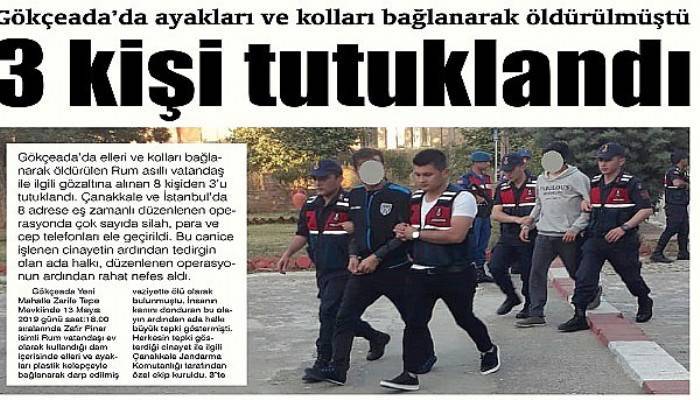 Gökçeada ilçesinde elleri ve kolları bağlanarak öldürülen Rum asıllı vatandaş ile ilgili gözaltına alınan 8 kişiden 3’u tutuklandı. Çanakkale ve İstanbul’da 8 adrese eş zamanlı düzenlenen operasyonda çok sayıda silah, para ve cep telefonları ele geçirildi. Bu canice işlenen cinayetin ardından tedirgin olan ada halkı, düzenlenen operasyonun ardından rahat nefes aldı.