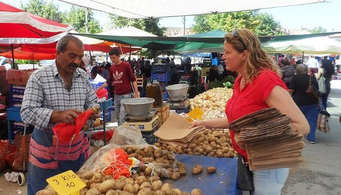 Naylon poşet yerine kullanılabilecek kağıt torba örneklerini esnafa dağıtan Gökçeada Kadın Kooperatifi arzu edilirse bu torbaları uygun fiyatla kendilerinden temin edilebileceğini 50 adetlik paketler 10 TL tüm pazar esnafına tek tek anlattı. Kadın Kooperatifinin etkinliğine Gökçeada Belediye Meclisinin 2 kadın üyesi de destek verdi.