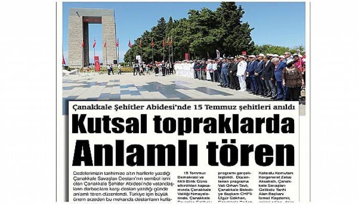15 Temmuz Demokrasi ve Milli Birlik Günü etkinlikleri kapsamında Çanakkale Valiliği himayelerinde, Çanakkale Savaşları Gelibolu Tarihi Alan Başkanlığı ev sahipliğinde Şehitler Abidesi’nde anma programı gerçekleştirildi. Düzenlenen programa Çanakkale Valisi Orhan Tavlı, Çanakkale Belediye Başkanı CHP'li Ülgür Gökhan, Çanakkale Boğaz ve Garnizon Komutanı Tuğamiral Levent Kerim Uça, Gelibolu 2'nci Kolordu Komutanı Korgeneral Zekai Aksakallı, Çanakkale Savaşları Gelibolu Tarihi Alan Başkanı İsmail Kaşdemir, askeri erkan, daire müdürleri, protokol üyeleri ve çok sayıda vatandaşlar katıldı.