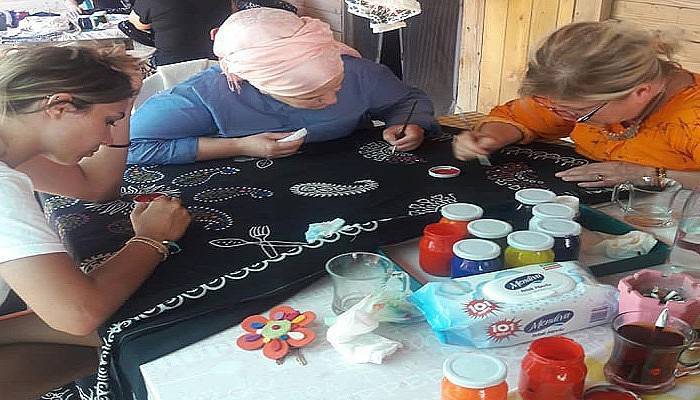 Düzenlenen kursta kireç söktürme tekniği ile masa örtüsü yapıldı. Ardından renklendirildi. Denizde yıkanıp, sabitlemesi yapıldı ve renklendirilmeye başlandı.