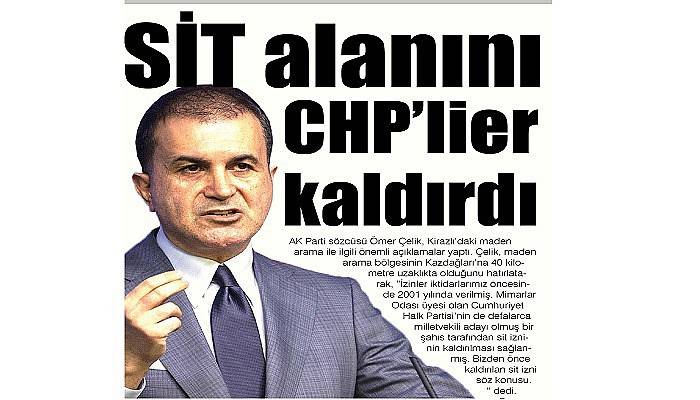 AK Parti sözcüsü Ömer Çelik, Kirazlı’daki maden arama ile ilgili önemli açıklamalar yaptı. Çelik, maden arama bölgesinin Kazdağları’na 40 kilometre uzaklıkta olduğunu hatırlatarak, ”İzinler iktidarlarımız öncesinde 2001 yılında verilmiş. Mimarlar Odası üyesi olan Cumhuriyet Halk Partisi’nin de defalarca milletvekili adayı olmuş bir şahıs tarafından sit izninin kaldırılması sağlanmış. Bizden önce kaldırılan sit izni söz konusu. “ dedi.