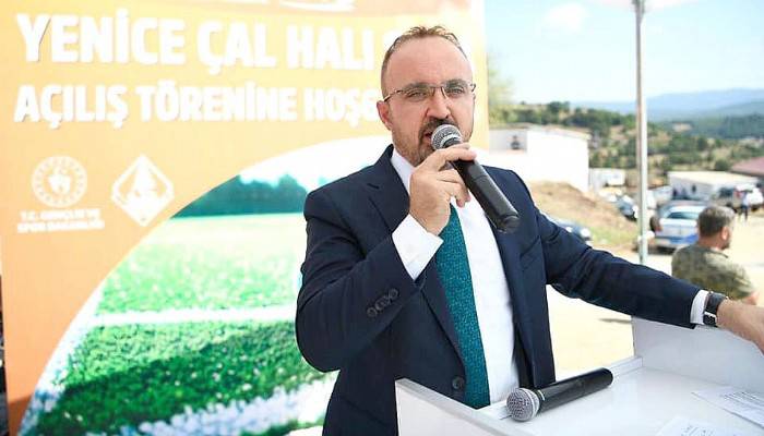 AK Parti Grup Başkanvekili ve Çanakkale Milletvekili Bülent Turan, Yenice Çal Köyü halı saha açılış töreninde gündeme dair değerlendirmelerde bulundu. Bülent Turan, 3 büyük şehre kayyım atanması ile ilgili açıklamalar yapan CHP Çanakkale İl Başkanı İsmet Güneşhan’ı kastederek malum başkan diye seslendi. Turan, “Bize laf yetiştiren adam, malum il başkanı neden kendi yandaşına, ortağına, kendi ittifakındaki partisine ‘sokağa çıkmak ayıptır, yanlıştır, demokrasiye bu yakışmaz’ demiyor. Neden bize laf yetiştiren, her şeye cevap veren adam işi gücü yokmuş gibi bizle uğraşan adam Diyarbakır’da orada, burada kendi ortaklarının yaptığı çağrının demokrasiye aykırı olduğunu, insanlarının hayatını riske ettiğini, ülkemizin kalkınmasına, ülkemizin eğitimine, sağlığına, ulaşımına her alandaki iddiasına engel olduğunu ifade etmiyor” ifadelerini kullandı.