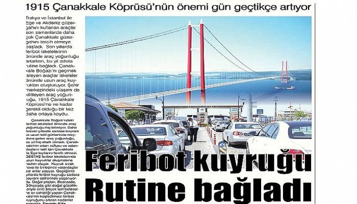Trakya ve İstanbul ile Ege ve Akdeniz güzergahını kullanan araçlar son zamanlarda daha çok Çanakkale güzergahını tercih etmeye başladı.  Son yıllarda feribot iskelelerinin önünde araç yoğunluğu artarken, bu yıl adeta rutine bağladı. Çanakkale Boğazı’nı geçmek isteyen araçlar iskeleler önünde uzun araç kuyrukları oluşturuyor. Şehir merkezindeki ulaşımı da kilitleyen araç yoğunluğu, 1915 Çanakkale Köprüsü’nü ne kadar gerekli olduğu bir kez daha ortaya koydu.