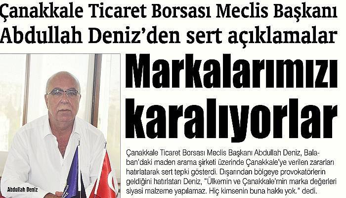 Bugün Çanakkale Boğaz Köprüsü’nün biteceği bir yerde, İhtisas OSB’mizin kurulacağı Ezine’de yatırımcı çekmek için iş adamları olarak ellilerinden geleni yaptıklarını belirten Deniz, buna karşı yapılan karalamalara şu tepkilerini şöyle sıraladı: “Şuanda zaten ülkemizin içinde bulunduğu ekonomik kriz var. Bu krizi il olarak ne kadar az atlayabiliriz, ne kadar teğet geçebilir biz bunun derdinde olmamız gerekirken, bakıyorum ki buharlaşması olmayan siyanürü farklı mecralarda kullanıyorlar. Ezine peyniri, coğrafi işaretleri olan bir markamızdır. Bugün Türkiye’nin her yerinde marka değeri olan Bayramiç beyazımız coğrafi işareti olan bir markadır. Bugün Çanakkale Ziraat Odası başkanımızın uğraştığı Çanakkale domatesi bir markamızdır. Bugün bu markalarımızı hibe etmek adına siyanür kampanyasıyla Çanakkale’nin kirli havası varmış gibi, kirli yerde oluşuyormuş gibi, tarım arazilerinin hepsi gitmiş gibi bir kampanya yapılıyor. Bizim de iş dünyası olarak rakiplerimiz var. Bu rakiplerimiz, iş dünyasında farklı mecralara çekebilir. Çanakkale’deki bir esnafın sattığı malı kötüleyebilir, siyanürlü olarak. Bunu en başta Çanakkale Belediyesi yapıyor. Bu beni korkunç derece üzüyor. Çanakkale Belediyesi, bugün Borsa’nın arkasında yol yapıyor. Borsa 110 bin lira gibi bir para ödemek zorunda kalıyor. Ama bakıyorum ki, dışarıdan gelen vatandaşlara otobüs tahsis ediyor. Bakıyorum ki, burada festivali iptal edip oradaki insanların yemeklerini, erzaklarını, taşımalarını yapıyor. Çanakkale’deki su parası ödeyen, Çanakkale’de imar barışından yararlanıp da belediyemize imar parası yatıran, inşaat yapıp da emlak vergisi ödeyenler, bu paralara yazık günah değil mi? Çanakkale’mizi hüsnüniyeti olarak savunmuyorlar. “