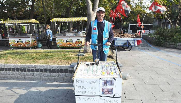 Kendisine çıkmış gibi çok sevindiğini ve kart sahibinin ihtiyacı olduğunu dile getiren seyyar satıcı Rahmi Alay, “Ben bu işe yeni başladım. Yaklaşık 5 aydır yapıyorum. Evden dışarı çıktım ve satış yerime geldim. Bir kadına sattığım kazı kazandan 10 bin TL çıktı. Ben daha çok mutlu oldum. İzin aldım fotoğrafını çektim. Gerçekten çok mutlu oldum hanımefendi adına da sevindim. Hem de ihtiyacı varmış, benden de çıkması beni daha mutlu ediyor. Hanımefendi kazandım dedi ben inanamadım. Kartına baktık gerçekten 10 bin TL çok şaşırdık. Kazı kazanda altı tane rakam var üç tanesinin tutması gerekiyor. 2 TL’den 200 bin TL’ye kadar kazanma şansı var” dedi.