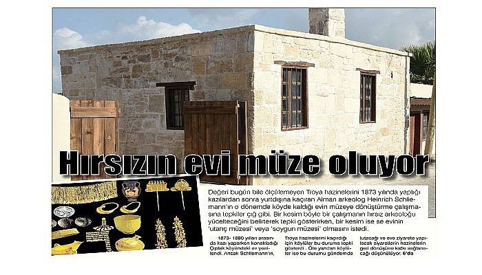 Değeri bugün bile ölçülemeyen Troya hazinelerini 1873 yılında yaptığı kazılardan sonra yurtdışına kaçıran Alman arkeolog Heinrich Schliemann’ın o dönemde köyde kaldığı evin müzeye dönüştürme çalışmasına tepkiler çığ gibi. Bir kesim böyle bir çalışmanın hırsız arkeoloğu yücelteceğini belirterek tepki gösterirken, bir kesim ise se evinin ‘utanç müzesi’ veya ‘soygun müzesi’ olmasını istedi.
