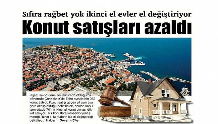 İnşaat sektörünün zor dorumda olduğu bir dönemde Çanakkale’de Ekim ayında bin 272 konut satıldı. Konut satışı geçen yıl aynı aya göre azalış olduğu belirtilirken, satılan konutların yüzde 70’nin ikinci el konut olması dikkat çekiyor. Sıfır konutlara kimsenin yanaşmadığı, ikinci el konutların ise el değiştirdiği belirtiliyor.