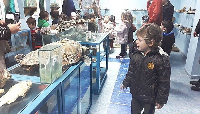 Minikler başlarında öğretmenleri ve Burhanettin Kurt Anaokulu Müdiresi Duygu Tohumcu ile birlikte müzede sergilenen deniz ürünlerini tek tek inceledi. Minikleri kapıda Yüksek Mühendis Ozan Güreşen karşılayarak müzeyi gezdirdi.