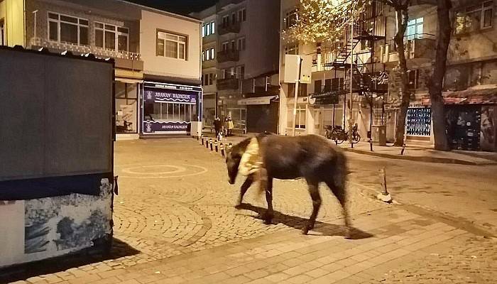 Yeni yılın ilk saatlerinde başıboş gezen bir at yoldan geçen vatandaşların dikkatini çekti.