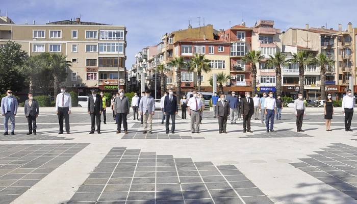Cumhuriyet Meydanı’nda düzenlenen çelenk törenine Çevre ve Şehircilik İl Müdürlü Ömer Bolat başta olmak üzere çok sayıda vatandaş katıldı. Koronavirüs tedbirleri kapsamında çelenk töreni sosyal mesafe kuralına uygun şekilde gerçekleştirildi. Program Çevre ve Şehircilik İl Müdürlü Ömer Bolat’ın Atatürk Anıtı’na çelenk sunmasının ardından, saygı duruşu ve İstiklal Marşı’nın okunmasıyla devam etti.