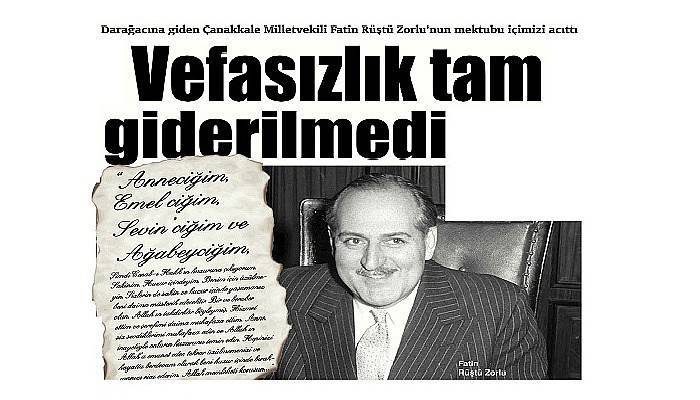 Çanakkale Kent Şurası Derneği Başkanı Bünyamin Nami Tonka, dönemin Başbakanı Adnan Menderes ile beraber haince idam edilen eski Çanakkale Milletvekili ve Dışişleri Bakanı Fatin Rüştü Zorlu’nun darağacına giderken yazdığı son mektubu yayınlayarak yapılan vefasızlığı hatırlattı. Yıllardır verilen mücadele sonucu sadece Biga İlçesi’ne bağlı Gümüşçay Beldesi belediyesinin adım atarak spor kompleksine ismi verileceği açıklanmıştı. Şimdiye kadar merkez ilçede böyle bir adım atılmaması ise vefasızlık olarak görülüyor.