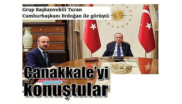 AK Parti Grup Başkanvekili ve Çanakkale Milletvekili Bülent Turan, Cumhurbaşkanı Recep Tayyip Erdoğan ile görüştü. Görüşmede Çanakkale’nin taleplerinin ve sorunlarının iletildiği ve önemli sözler alındığı öğrenildi.
