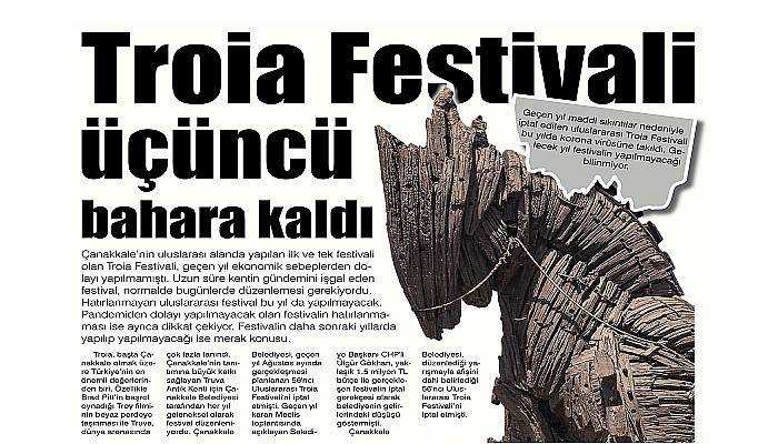 Troia, başta Çanakkale olmak üzere Türkiye’nin en önemli değerlerinden biri. Özellikle Brad Pitt’in başrol oynadığı Troy filminin beyaz perdeye taşınması ile Truva, dünya arenasında çok fazla tanındı. Çanakkale’nin tanıtımına büyük katkı sağlayan Truva Antik Kenti için Çanakkale Belediyesi tarafından her yıl geleneksel olarak festival düzenleniyordu. Çanakkale Belediyesi, geçen yıl Ağustos ayında gerçekleşmesi planlanan 56'ncı Uluslararası Troia Festivali'ni iptal etmişti. Geçen yıl kararı Meclis toplantısında açıklayan Belediye Başkanı CHP'li Ülgür Gökhan, yaklaşık 1.5 milyon TL bütçe ile gerçekleşen festivalin iptal gerekçesi olarak belediyenin gelirlerindeki düşüşü göstermişti. Çanakkale Belediyesi, düzenlediği yarışmayla afişini dahi belirlediği 56'ncı Uluslararası Troia Festivali’ni iptal etmişti.