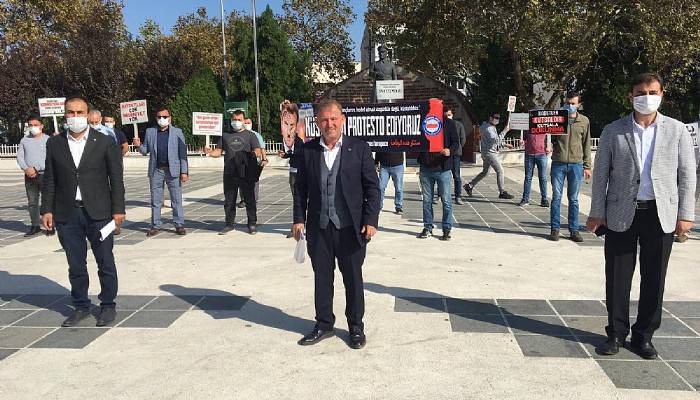 Özen, "İnsanlığa rahmet olarak gönderilen, Hatem-ül Enbiya Hz. Muhammed Mustafa’ya ilişkin sözde karikatürlere fikir özgürlüğü adına sahip çıkması ve Müslümanları aşağılamasını telin etmek için burada toplandık. Aslında Macron, bir görüntü Avrupa’da birçok ülkede bir cinnet hali yaşanıyor. Yabancı düşmanlığı, ırkçılık ve İslamofobi, o meşhur Avrupa aklını esir almış, çoğulculuk söylemlerinin sırçası dökülmüş ve nihayet aşırı sağ siyasetin ürettiği politikalar siyaseti belirler hale gelmiştir. Almanya’da cami baskını, Hollanda’da Gert Wilders’in terör ve şiddet içeren konuşmaları ve nihayet Macron’un, ifade hürriyeti arkasına sığınarak, İslam’a ve peygamberine saldıran unsurlara sahip çıkması cinnetin boyutlarını göstermektedir. Burada bir parantezle bir başka tepkimizi de özellikle ifade edelim. Kutsal emanetlerimizin mekanı olmakla yetinip, kutsala sahip çıkmayı beceremeyen Suudi Arabistan yönetimini ve onunla aynı kulvarda bulunmaya teşne Birleşik Arap Emirliklerini de tarih ve bizler not ediyoruz. Dine ve kutlu nebiye dönük hakaret faillerinin kuyruğuna takılan ülkelerin ve yöneticilerin, emperyalist taşeronluğu ve kapitalistlerin sömürü baronluğu sıfatlarının sona ermesinin de yakın olduğunu görüyoruz. Hemen belirtelim ki insanlığın inançlarını hedef almak özgürlük değil, küstahlıktır. Avrupa’daki kimi siyasetçilerde olduğu gibi Macron da kirli siyasetine malzeme aramaktadır. Macron’un, sözde ifade özgürlüğü adı altında doğrudan insanların inançlarına saldıran ve neresinden bakarsanız bakın kin, nefret ve terörle şekillenmiş zihinler tarafından çizilmiş karikatürlere sahip çıkarak, teröre ve kine ortak olmaktadır. Emanuel Macron, siyaseten yaşadığı krizi örtmek için özellikle yabancı düşmanı ve ırkçı aşırı sağ siyasetin söylemlerini kullanması, kendi ülkesinin milletvekili tarafından dahi ‘bu ülke aklını mı yitirdi’ şeklinde eleştirilmiştir. Son birkaç aydır, ısrarla İslam ve Müslümanlar üzerinden güç devşirmeye çalışan, deyim yerindeyse, aklını yitirmiş küresel emperyalist odaklara yardakçılık yapan Macron’u korku çemberi sımsıkı sarmış durumda. Macron, insandan, adaletten, İslam’dan korkuyor. Son birkaç yüzyılda bütün insanlık öğrendi ki özgürlük batıda slogandır. Batı iki değerden korkmaktadır aziz dostlar adil dünyadan ve özgür insandan. İslam da tam da bunu vaat etmektedir" dedi.