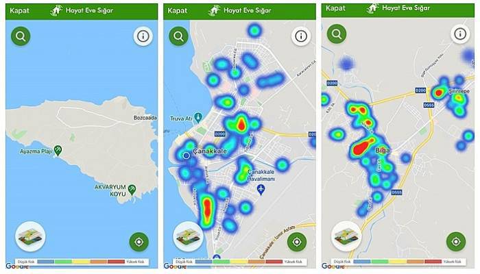 HES Yoğunluk haritası verilerine göre, Çanakkale ili genelinde en az riskli bölgeler, Bozcaada, Gökçeada, Eceabat iken salgında en fazla risk taşıyan bölgeler; Çan, Biga ve Ezine olarak kaydedildi.