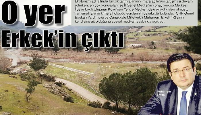 Ekoturizm adı altında birçok tarım alanının imara açılması tartışması devam ederken, en çok konuşulan ise İl Genel Meclisi’nin onay verdiği Merkez İlçeye bağlı Ulupınar Köyü’nün Yellice Mevkisindeki ağaçlık alan olmuştu. Tartışmalı alanın kime ait olduğu sorularının cevabı da bulundu. CHP Genel Başkan Yardımcısı ve Çanakkale Milletvekili Muharrem Erkek 1/2'sinin kendisine ait olduğunu sosyal medya hesabında açıkladı.