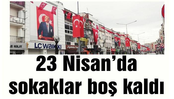 Bu yıl ise sokağa çıkma yasağından dolayı 23 Nisan Ulusal Egemenlik ve Çocuk Bayramı evlerde yapıldı. Bayramın mutluluğu, eğlencesiyle dolup taşan sokaklar bu sene bomboş kaldı. Sokaklar Türk Bayrağı ile donatıldı. Ev balkonlarında bayraklar asıldı.