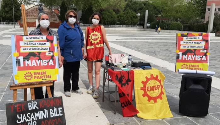 İşçini emekçinin 1 Mayıs bayramı öncesinde haklı taleplerini kurdukları stand ile ilan eden Emek Partisi Çanakkale il Başkanlığı görevlileri Güvenceli iş, insanca yaşam hak ve özgürlükler için başlığı ile el ilanı dağıtarak haklı taleplerine anlatıyorlar. El ilanında haklı taleplerini bir kez daha gündeme getirdiklerini ifade eden Emek Partisi yetkilileri “İşçi sınıfının sermaye ve burjuvaziye karşı Uluslararası birlik, dayanışma ve mücadele günü 1 Mayıs’ı kutlama hazırlıkları sürerken ülkenin dört yanından valilik ve kaymakamlıkların “yasaklama kararları” peş peşe geliyor. İç İşleri Bakanlığı’nın Pandemiye karşı önlemler çerçevesinde yayınladığı genelgeye dayanılarak getirilen “yasaklama kararları”nın AKP’nin “lebaleb” dolu salonlarda kongrelerini yaptığı koşullarda zerrece inandırıcılığı yoktur/olamaz. Pandemi bir bahanedir ve bugüne kadar olduğu gibi işçi ve emekçilere karşı bir silah olarak kullanılmaktadır. Gerçek de “Tek adam rejimi” ve sermaye cephesi 1 Mayıs’ı yasaklayarak “aç kalmakla, ölüm tehlikesini göze almak” ikilemine sıkıştırdığı Türkiye işçi sınıfı ve emekçilerin ekmek ve özgürlük taleplerini en kritik anda boğmak istiyor. Çünkü, sermaye cephesi ve gerici burjuva iktidarlar 1 Mayıs’ın emek, sermaye arasındaki mücadelede üstlendiği rolü tarihsel tecrübeyle çok iyi biliyorlar: 1 Mayıs bilindiği gibi en başta işçi sınıfıyla, sermaye cephesinin uluslararası ve ülkeler düzeyinde karşılıklı güçlerini sınadığı bir gündür. Bu yüzden işçilerin birliği ve gücünü ortaya koymasına engel olmak için sermaye ve burjuva gericilik güç yetirebildiği her yerde 1 Mayıs’ı yasaklarla engellemeye çalışmıştır. Bir başka gerçeklikte şudur: Tek adam rejimi yasaklamalarla yalnızca işçi ve emekçilerin değil, “İstanbul sözleşmesine dönülsün” diyen kadınların, özerk demokratik üniversite mücadelesi veren öğrenci ve akademisyenlerin, maden ve enerji şirketlerine karşı üretim ve yaşam alanlarını savunan yoksul köylülerin, açlığın kollarına itilmiş işsizlerin, vergi ve kira borcu yüzünden kepenk indirmek zorunda kalan küçük esnaf ve dükkân sahiplerinin seslerini de boğmak istiyor. Çünkü, işçi sınıfı ve kamu emekçileri 1 Mayıs’ı konfederasyon ayrımı yapmadan birleşik ve güçlü biçimde kutlarsa bütün bu kesimleri de birleştirerek tek adam rejimi ve tekelci sermayenin karşısına topyekûn dikecek yolun kapısını aralamış olacaktır. Tek adam iktidarının ve tekellerin uykusunu kaçıran ve yasak kararları almalarına neden olan gerçek budur. İleri işçiler ve mücadeleci sendikalar bu gerçeğin bilincinde hareket ettiği oranda “korkunun ecele faydası olmayacak”tır. Türkiye işçi sınıfı 12 Eylül koşullarında dahi 1 Mayıs’ı kutlamış, 1988 ve ‘90 yılında fabrikaları, üretim alanlarını, sokak ve meydanları fiilen 1 Mayıs alanına çevirerek baskı ve yasaklamaları çöpe atmıştır. “Tek adam iktidar”ının “yasaklar”ının da aynı akıbeti paylaşacağından şüphe duymamak gerekir. Tek adam iktidarı ve sermaye cephesi bu antidemokratik emek düşmanı kararlardan bir an önce geri dönmelidir. Baskı ve yasakla işçi sınıfı ve emekçilerin 1 Mayıs’ı kutlamalarının engellenebildiğinin tarihte örneği yoktur. Baskı ve yasaklamalar sökmeyecek işçi ve emekçiler 2021 1 Mayıs’ını “Güvenceli iş, insanca yaşam, ekmek ve özgürlük” talepleri temelinde olabilir en ileri biçimlerle kutlayacaktır. Partimiz bütün imkanlarıyla bu mücadelesinde işçilerle beraber olacaktır.1 Mayıs engellenemez! Yaşasın 1 Mayıs, yaşasın işçilerin birliği ve mücadelesi!” ifadelerine yer verdiler.
