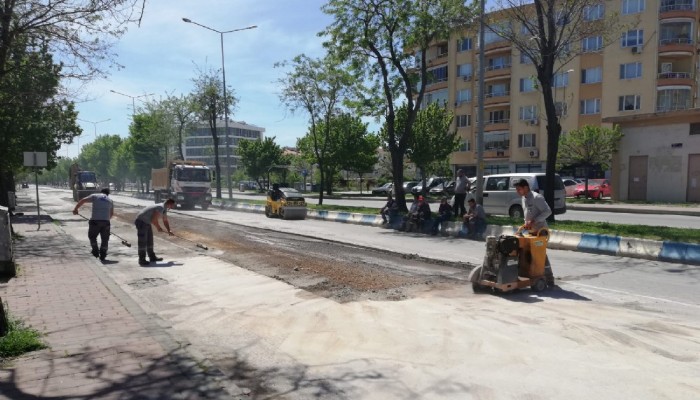 Çanakkale Belediyesi sokağa çıkma yasağını fırsat bilerek çalışmalarına devam ediyor. Belediye ekiplerinin çalışmaları kapsamında Troya caddesine asfalt atılarak yol düzeltildi.