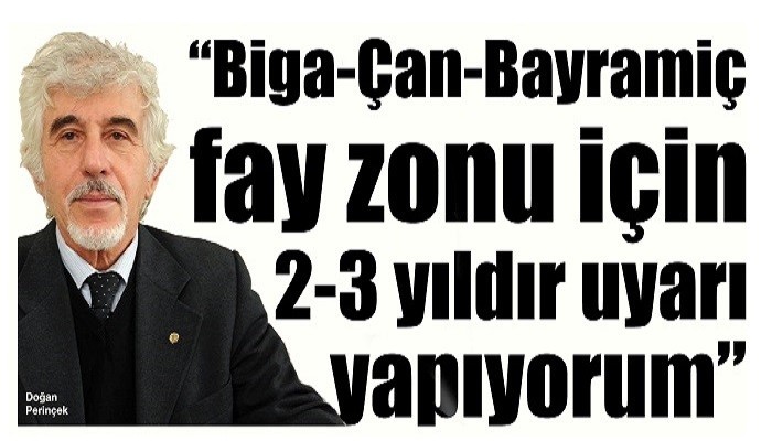 Prof. Dr. Doğan Perinçek, “Biga yakınlarında sat 9:42 de 4,2 ve saat 9:47 de 2,2 büyüklüklerde depremler oldu. Bu depremler 2 - 3 yıldır uyarı yaptığımızı fay kuşağı üzerinde yer aldı. Bu depremlerin öncü ya da ana deprem olma olasılığı eşit. Bunu kesin olarak bilemeyiz. Fakat en kötü olasılığı düşünüp tedbirli olmakta yarar var. Yetkililere uyarılarımı sürdürmek istiyorum. Bandırma ve Erdek ilçemiz ve Çanakkale ilçeleri özellikle Biga-Çan-Bayramiç aktif faylar üzerinde ya da çok yakınında. Bu faylardan bir tanesi Çan ilçesi içinden geçiyor ve 287 yıldır büyük deprem yaratmadı. Bayramiç güneyindeki fay aktif ve kayıt yok. Bilmiyoruz bu fay belki de 1000 yıldır deprem yaratmadı’’ dedi.