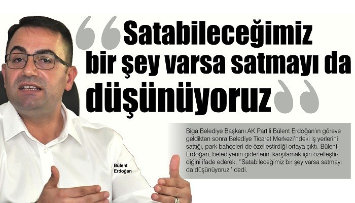 Biga Belediye Başkanı AK Partili Bülent Erdoğan'ın göreve geldikten sonra Belediye Ticaret Merkezi'ndeki iş yerlerini sattığı, park bahçeleri de özelleştirdiği ortaya çıktı. Bülent Erdoğan, belediyenin giderlerini karşılamak için özelleştirdiğini ifade ederek, ‘’Satabileceğimiz bir şey varsa satmayı da düşünüyoruz’’ dedi.