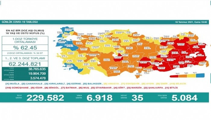 Sağlık Bakanı Dr. Fahrettin Koca'nın, sosyal medya hesabından paylaştığı günlük Covid-19 tablosunda, nüfusa oranla yüzde 75.1 ile komşumuz Balıkesir'in de mavi kategori de olduğunu açıkladı.