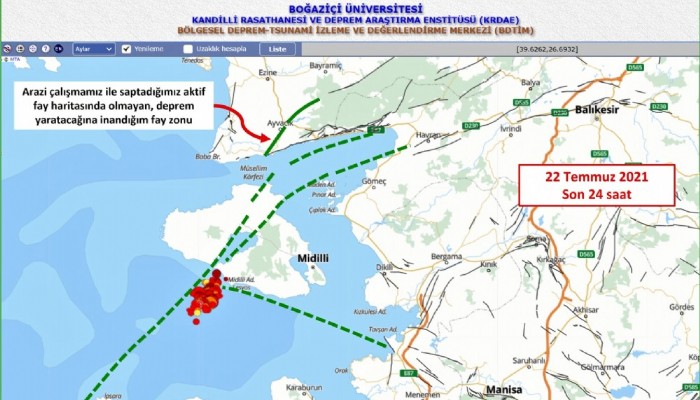 Son 1 ayda Midilli fayı üzerinde en büyüğü 4,2 büyüklüğünde 284 deprem meydana geldi. Deprem Uzmanı Prof. Dr. Doğan Perinçek, ‘’Midilli Güneyinde yaşadığımız depremler Adadaki ve kuzeyindeki fayları tetikleyip Assos kuzeyindeki faya ve oradan da Evciler Fayına ulaşır ve onu da tetiklerse bölgemizde büyük yıkıcı bir deprem yaşamamız kaçınılmaz olacaktır’’ dedi.