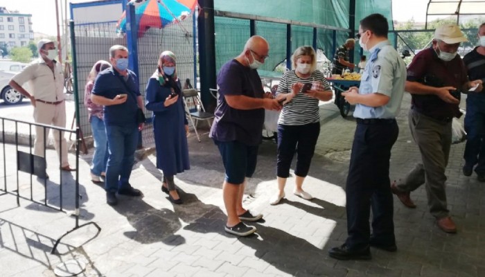 Çanakkale aşılama sırasında 2’nci olmaya devam ederken Salı Pazarında HES kodu sorulmaya devam ediliyor. Pazara girişlerde HES kodu bakılmadan içeri alınmıyor. Vatandaşlar da pazara girişlerinde kolaylık olsun diye anahtarlık şeklinde HES kodlarını gösteriyor.