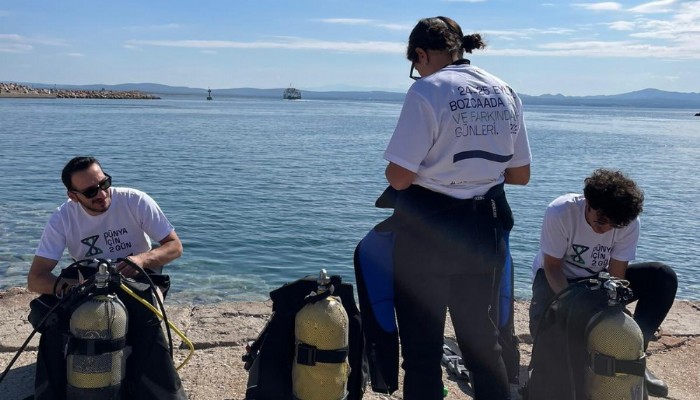 Yaz aylarında en çok tercih edilen turistik yerlerin başında gelen Bozcaada'da deniz dibi temizliği yapıldı. Tatilcilerden geriye denize atılmış onlarca şişe kaldı.