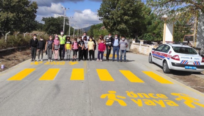Yenice İlçe Jandarma Komutanlığı ve Kalkım Belediyesi personeli, öğrenciler ile birlikte “Önce Yaya Uygulaması” kapsamında yaya geçitlerini boyadılar.