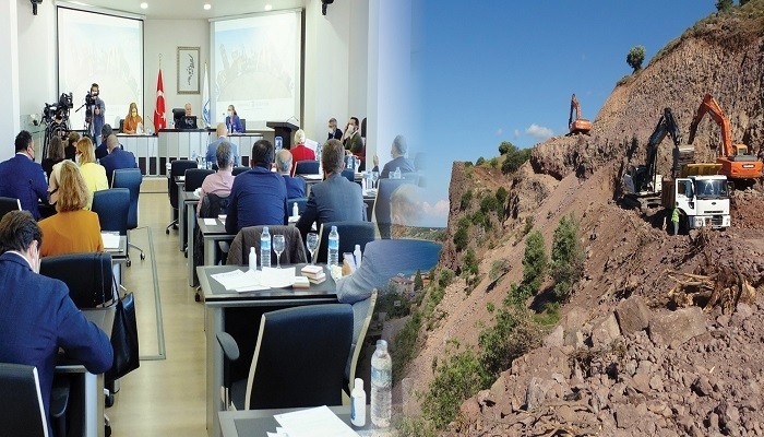 Assos antik kentinde kaya ıslahı için bir süredir çalışmalar devam ediyor. Çalışmalar devam ederken denizden çekilen görüntülerin medyada yer etmesi ile toplumun her kesiminden tarihi ve doğal yapıyı tehdit etmesi ile büyük tepki toplandı. Gündem dışı Söz Alan CHP Belediye Meclisi Grup Başkan Vekili Erdal Gezen, “Assos Antik Kenti birinci derecede arkeoloji ve doğal sit alanı olan bir yer. Ben Ayvacıklıyım benim küçüklüğüm orada geçti.  Deniz tarafından çekilen fotoğrafları görünce insanın içi sızlıyor.  Çünkü orada falez vardı kendine has doğal bir taş yapısı vardı.  Kazıldı ve ucube bir hale getirildi.  Bu fotoğrafla antik limandaki otelin ticari değeri bile düşüyor.  Burada yapılması gereken taşın düşmesine bağlı olan tehlikeyi engellemek.  Kepçeler sokuldu, patlayıcılarla taşların patlatıldığı söyleniyor.  Sümela Manastırında da aynı durum var ve her taraf çelik tellerle bağlanmış.  Burada da öyle bir çözüm yapılabilirdi. Kültür Varlıkları Tabiat Kanunu diye bir kanun var.  Burada Koruma kurullarına verilen yetkiler. 9’uncu Maddede ‘Koruma, Yüksek Kurulun ilke, kuralları çerçevesinde, koruma  bölge kurullarınca alınan kararlara aykırı olarak  korunması gereken taşınmaz ve tabiat  varlıkları ve koruma alanları ile sit alanlarında inşai ve fiziki müdahalede  bulunamaz. Bunlar yeniden kullanıma açılamaz. Esaslı onarım, inşaat, sondaj, kısmen veya tamamen yıkma , yakma kazı veya benzeri işler  fiziki müdahale sayılır’ diyor.   Şu anda Assos’ta hepsi yapılıyor.   Gökçeada, Bozcaada, Assos yerleşim yerlerinin hepsi sit alanı.  Evinin bakımı için duvarın dibindeki toprağı alan kişiler yargılanıyor.  Yasa öyle diyor çünkü.  Bölgede böyle sayısız dava var.  Eğer yasa herkes için eşit mesafedeyse  Burada yapılan yargılamalara bağlı olarak  Assos’ta yapılan suçtur” dedi.