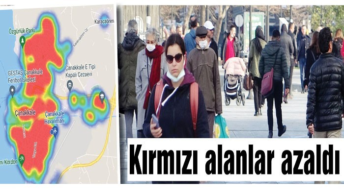 Güncel vaka sayısı haritasına göre nüfusa oranla en çok vakanın olduğu iller sıralamasında hep üst sıralarda yer alan ve son zamanlarda sabit kalan Çanakkale’de Hayat Eve Sığar (HES) uygulamasındaki risk haritasında yüksek riski temsil eden kırmızı renkli alan az da olsa azalmış.