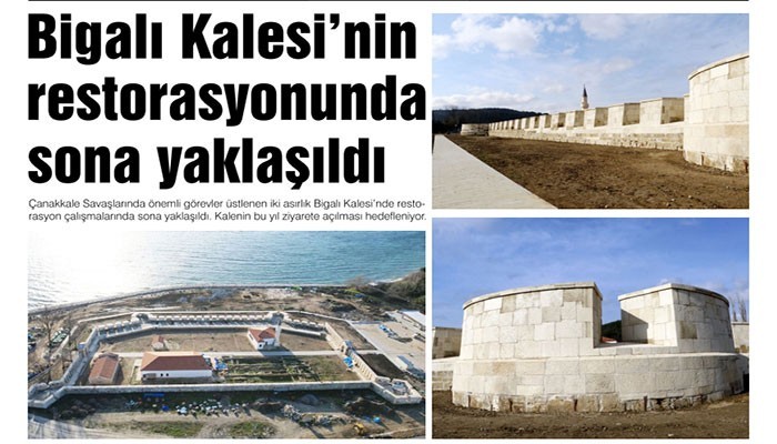 Çanakkale Savaşları Tarihi Alan Başkanı İsmail Kaşdemir, Çanakkale Boğazı'nın savunma yapılarından birisi olan Bigalı Kalesi'nde restorasyon sürecinin tamamlamak üzere olduğunu söyledi. Kaşdemir, Çanakkale Tarihi Alan Başkanlığı olarak tarihi alanda bulunan bütün tarihi mekanları, savunma yapılarını aslına uygun bir şekilde restore edip, gelen ziyaretçiye açık hale getiriyoruz. İçinde bulunduğumuz bu gazi mekan Bigalı Kalesi, Çanakkale Savaşları sırasında cephe gerisinde çok önemli bir işlev görmüştür. Burası silah tamirhanesi olarak görev yapmış. Mehmetçik'in Çanakkale Destanı'nı yazdığı, tüfeklerin, silahların tamir edildiği ve savunmaya çok önemli destek verilen bir yerdir.” dedi.