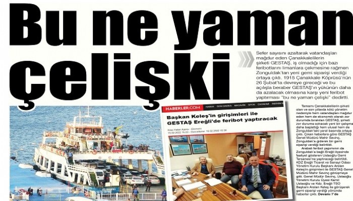 1915 Çanakkale Köprüsü’nün 26 Şubat’ta devreye gireceği ve bu açılışla beraber GESTAŞ’ın yükünün daha da azalacak olmasına karşı yeni feribot yaptırması “bu ne yaman çelişki” dedirtti.