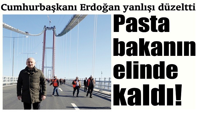 Cumhurbaşkanı Erdoğan’ın halkın istediği tarihe köprünün açılışını ertelemesinin ardından bakanlığa birçok eleştiri geldi. Ulaştırma bakanlığının köprünün açılışını Cumhurbaşkanı Erdoğan’ın doğum gününe çektiği ve bunun için dev pasta hazırlattığı konuşuldu. Hatta bu pasta kesimine de Çanakkale’de de bazı kişilerine katılacağı konuşuldu. Tarihin normale çekilmesi ile “Dev pasta bakanın elinde kaldı” yorumlarına neden oldu.