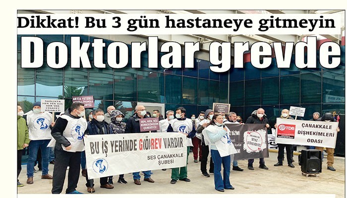 Çanakkale merkezde sağlık hizmeti sunan Çanakkale Mehmet Akif Ersoy Devlet Hastanesi ve ÇOMÜ Sağlık Uygulama ve Araştırma Hastanesi ile Aile Sağlık Merkezleri doktorlar bu defa 3 gün iş bıraktı. Haftanın ilk üç gününe denk gelen grevde hastaneler sessizliğe gömülecek. Doktorlar Şubat ayında acil hizmetler dışında üç gün iş durdurmanın ardından 14-15-16 Mart günlerinde yeniden greve gitti.