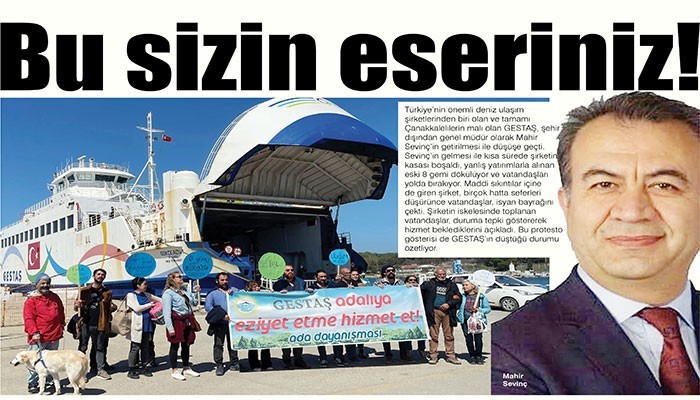 Türkiye’nin önemli deniz ulaşım şirketlerinden biri olan ve tamamı Çanakkalelilerin malı olan GESTAŞ, şehir dışından genel müdür olarak Mahir Sevinç’in getirilmesi ile düşüşe geçti. Sevinç’in gelmesi ile kısa sürede şirketin kasası boşaldı, yanlış yatırımlarla alınan eski 8 gemi dökülüyor ve vatandaşları yolda bırakıyor. Maddi sıkıntılar içine de giren şirket, birçok hatta seferleri düşürünce vatandaşlar, isyan bayrağını çekti. Şirketin iskelesinde toplanan vatandaşlar, duruma tepki göstererek hizmet beklediklerini açıkladı. Bu protesto gösterisi de GESTAŞ’ın düştüğü durumu özetliyor.