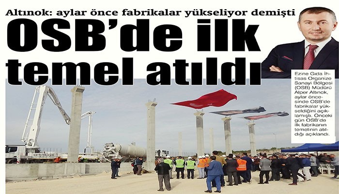 Ezine Gıda İhtisas Organize Sanayi Bölgesi (OSB) Müdürü Alper Altınok, aylar öncesinde OSB’de fabrikalar yükseldiğini açıklamıştı. Önceki gün OSB’de ilk fabrikanın temelinin atıldığı açıklandı.