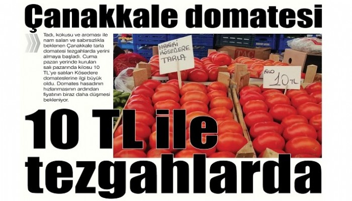 Çanakkale domatesinin 3 dönem dikimi yapılıyor. İlk dikilen turfandanın hasadı başladı. Kösedere bölgesinden toplanan domatesler Cuma Pazarı’nda tezgahlarda yerini aldı. Kilosu 10 TL’den tezgahlarda yerini alan domateslerin fiyatının önümüzdeki günlerde düşüp düşmeyeceği merak ediliyor. Başta akaryakıt olmak üzere maliyetlerin artması nedeniyle fiyatların çok fazla düşmeyeceği belirtiliyor.