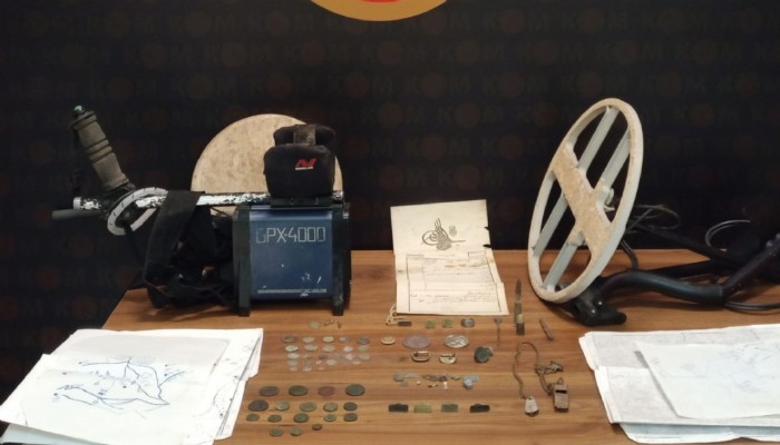 Alınan bilgiye göre; İl Emniyet Müdürlüğü ekipleri Kaçakçılıkla Mücadele kapsamında yaptıkları çalışmalar sonucu E.Ç. nin ikametlerine operasyon düzenledi. Operasyonda; 42 adet üstünde figürler bulunan sikke, 7 adet mühür benzeri metal obje, 1 adet gri renkli yüzük, 1 adet üstünde metal objeler bulunan üstü paslanmış zincir uçlu düdük, 2 adet üstünde ay yıldız bulunan metal obje, 16 adet farklı büyüklükte metal obje, 2 adet ucu sivri metal obje, 3 adet saydam renkli obje, 2 adet farklı çap ve büyüklükte paslanmış eski fişek ele geçirilmiş, 1 adet üstünde tuğra şekli olan Arap harfleri ile yazılmış kağıt evrak, 2 sayfa (adet) elle yazılmış kroki, 1 adet (sayfa) büyük beyaz kağıda elle yazılmış kroki, 3 adet (sayfa) ölçekli topoğrafik harita benzeri kroki, 1 adet üstünde MİNELAB GPX-4000 yazan metal arama detektörü ve 1 adet üstünde LORENZ DEEPMAX ele geçirilerek ilgili karara istinaden el konuldu.