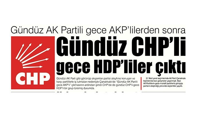 Benzer bir durum şimdi CHP Çanakkale teşkilatı için konuşuluyor. Gündüz partisinin yanında yer aldığını belirten bazı önemli isimleri, arka planda HDP’lilerle işbirliği içinde olduğu belirtiliyor. Bu durumda bir süredir CHP kanadında konuşuluyor. Bu gizli işbirliği nedeniyle Çanakkale’de HDP’nin CHP içinde çok etkili olduğu ifade ediliyor. CHP içinde özellikle belediyelerde işlerin daha çok HDP’lilere verildiği huzursuzluğu hakim olduğu belirtiliyor. Tüm bu gelişmelerin yaşandığı CHP’de, “Gündüz CHP’li gece HDP’liler var” sözleri her geçen gün daha çok dile getirilmeye başlandı.