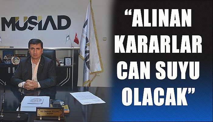 "Başbakan Sayın Binali Yıldırım tarafından açıklanan ve 250 milyar TL’lik kredi hacminin oluşturulması, imalat sanayii yatırımlarına verilen desteğin artırılması, SGK primleri ötelenme imkânı ve kamu bankalarının mevduat faizlerinin %7,5’e sabitlenmesi başta olmak üzere; Ekonomi Koordinasyon Kurulu tarafından alınan kararlar, kısa ve orta vadede Türkiye ekonomisine nefes aldıracak, yatırım, üretim ve istihdam artışını destekleyecektir.