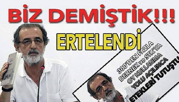 Kent Konseyi Başkanı Saim Yavuz, yönetim ile birlikte yaptığı açıklamada genel kurulun ertelendiğini, yeni tarihin ise ilerleyen günlerde belirneceğini söyledi. İki gün önceki haberimizde, Çanakkale İdare Mahkemesi kararıyla 300 dernek ve STK'ya oy kullanma yolu açılmasının arıdından, etekleri tutuşan mevcut yönetimin seçimi erteleme planları yaptığını duyurmuştuk...