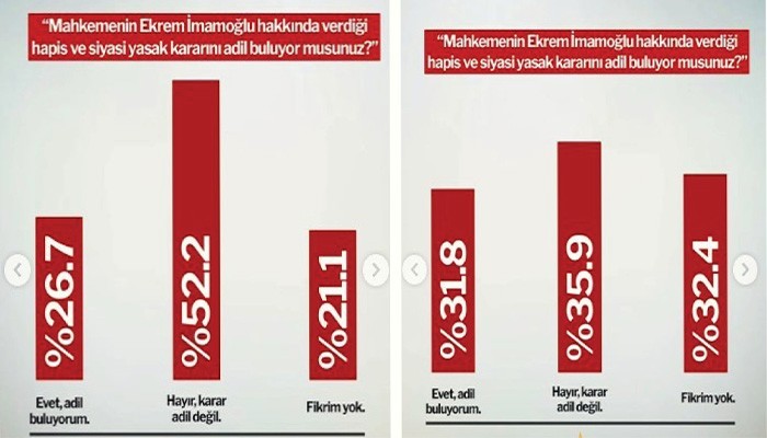 İmamoğlu'na 2 yıl 7 ay 15 gün hapis cezası verildi. Siyasi yasak  da alan karar sonrası Türkiye Raporu Direktörü Can Selçuki,  İstanbul Büyükşehir Belediye Başkanı Ekrem İmamoğlu kararına ilişkin yaptıkları Aralık ayı anket raporunu sosyal medyadan paylaştı.