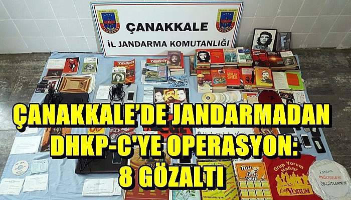 Çanakkale’nin Biga ilçesine bağlı Ağaköy’de İl Jandarma Komutanlığınca yapılan istihbari çalışmalar sonucunda terör örgütü DHKP-C'nin Üniversite öğrenci yapılanmasına yönelik 5 adrese eş zamanlı operasyon gerçekleştirildi. Dün yapılan operasyonda B.S., D.K., H.A.Ö., B.Ç., S.H., S.Y. E.M. ve Ç.B. isimli 8 kişi gözaltına alındı. Belirtilen adreslerde yapılan aramada; 5 dizüstü bilgisayar, 2 adet tablet, 3 adet flash bellek,16 adet CD, 10 adet cep telefonu, 8 adet SİM kart, 36 adet afiş, 2 adet propaganda yeleği, 90 adet kitap, 5 adet dergi, 52 adet takvim, 10 adet not defteri, 32 sayfa not kağıdı, 52 adet fotoğraf, 44 adet davetiye olmak üzere DHKP-C terör örgütüne ait çok sayıda örgütsel doküman ve malzemeler ele geçirildi. Şüpheli şahıslar Cumhuriyet Savcısının talimatıyla gözaltına alındı.