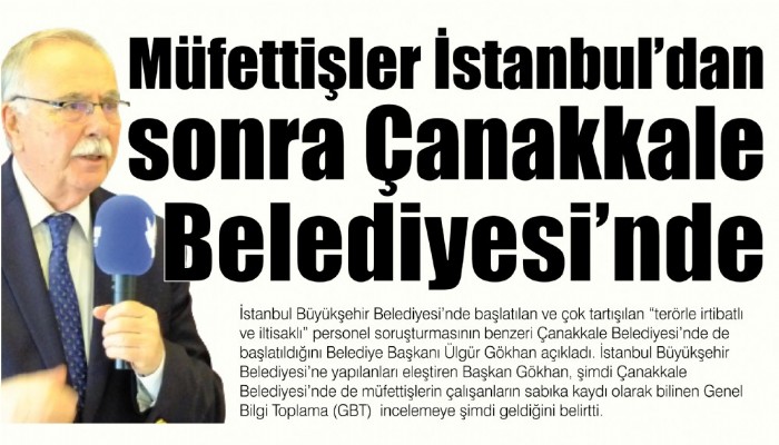 İstanbul Büyükşehir Belediyesi’ne yapılanları eleştiren Başkan Gökhan, şimdi Çanakkale Belediyesi’nde de müfettişlerin çalışanların sabıka kaydı olarak bilinen Genel Bilgi Toplama (GBT) incelemeye şimdi geldiğini belirtti.